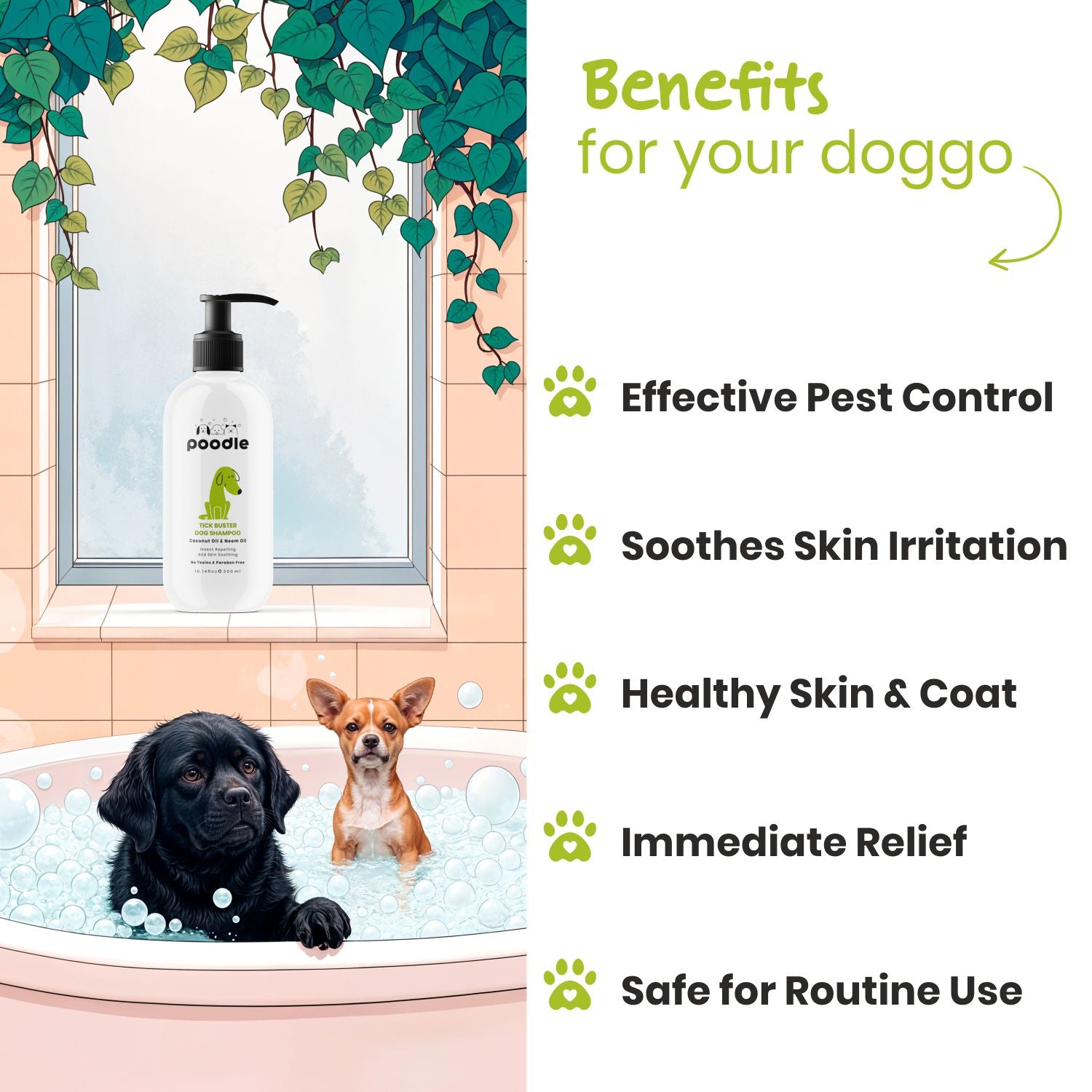 Poodle Tick Buster Dog Shampoo 300ml - Anti Itch Tick and Flea | Herbal Neem Formula | Natural and Safe for Puppies & Dogs | Effective Dog Ticks Shampoo